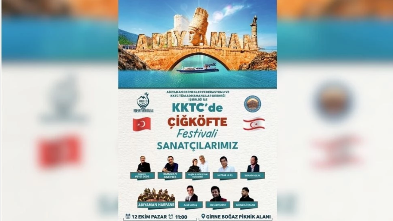 Adıyaman Dernekler Federasyonu ile KKTC Tüm Adıyamanlılar Derneği iş birliğinde düzenlenen “Çiğköfte Festivali’nde Kardeşlik Sofrasında Buluşuyoruz” etkinliği, bu yıl da büyük bir coşkuyla gerçekleştirilecek.