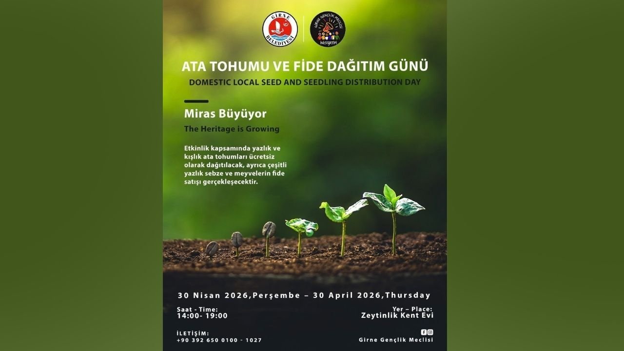 Girne Belediyesi’nden verilen bilgiye göre, “Miras Büyüyor” temasıyla 30 Nisan Perşembe günü gerçekleştirilecek etkinlikte, yerel tarım değerlerinin korunması ve gelecek nesillere aktarılması hedefleniyor.