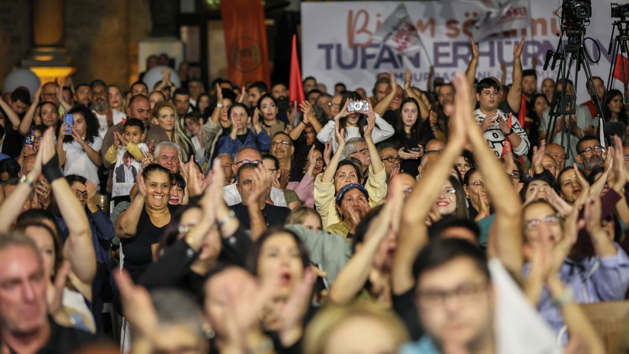 Yoğun bir katılımla gerçekleştirilen etkinlikte konuşan Cumhurbaşkanı adayı Tufan Erhürman, “Aylardır sokaklardayız. Aylardır yürüyoruz. Yürüdükçe çoğalıyoruz. Gönülleri kazanarak geliyoruz” dedi. Erhürman, “Bu akşam muhtemelen son kalabalık toplantımız; bu aylar boyunca ailesinden özveride bulunan arkadaşlarım var, işinden izin alan, ödeneksiz izin alan arkadaşlarım var. Herkes her türlü fedakârlığı yaptı. Çocuklarına vakit ayıramayan arkadaşlarım var. “Babam, annem, senin için gidiyorum, senin için yürüyorum” diyerek özveride bulunan arkadaşlarım var. Kutlamada buluşacağız. Bu yolu — üç gün sonra — bu memlekette değişimi başlatacak yolu sizinle birlikte yürüdüm ya, ölsem de gam yemem” dedi. Beş koca sene, cumhurbaşkanlığı makamında hiçbir şey yapılmadığının altını çizen Erhürman, “Daha önceki dört cumhurbaşkanımız da bu halkın hak ve çıkarlarını savunmak için müzakere etti. İlk defa beş yıl müzakeresiz geçti” dedi. Hiçbir konuda taş üstüne taş konmadığına işaret eden Erhürman, bu memlekette cumhurbaşkanının içerde de görevleri olduğunu belirtti ve bu görevleri anayasa ve yasaların verdiğini ifade etti. Tufan Erhürman, “Bu arkadaşlar hiçbir şey yapmadığına göre beş sene boyunca, bildiğimiz taktikleri uygulayacaklar. Senelerdir bize izletilen taktikler bunlar. “Böleceklermiş bizi, bölüp yöneteceklermiş, bizi parçalayacaklarmış.” “TC kökenliler bir tarafta, Kıbrıs kökenliler bir tarafta olacakmış; iskele başka yerde, Lefkoşa başka yerde olacakmış.” Böldükleri zaman bir parçası kendilerine kalacakmış. Daha ilk gün bir şey söyledik: “Bölmeye çalışacaklar, inadına birleştireceğiz.” Onlar parçalamaya çalışacak, biz inadına birleştireceğiz. Kardeşlik hukukumuzu kimse ortadan kaldıramayacak” diye konuştu.