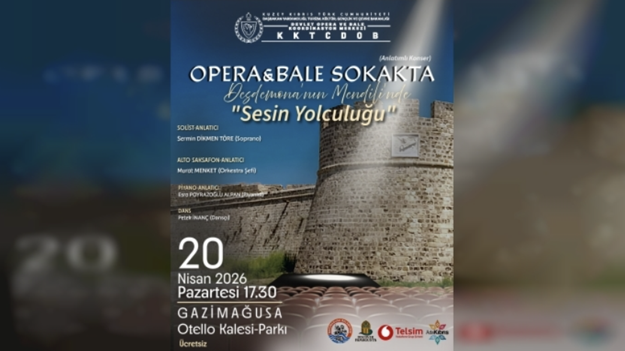 Kuzey Kıbrıs Türk Cumhuriyeti Devlet Opera ve Bale Koordinasyon Merkezi’nin (KKTCDOB) hayata geçirdiği “Opera & Bale Sokakta-Sesin Yolculuğu” etkinliği, Gazimağusa Belediyesi iş birliğiyle Gazimağusa’da sanatseverlerle buluşacak.